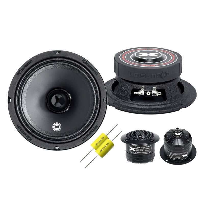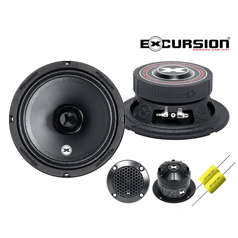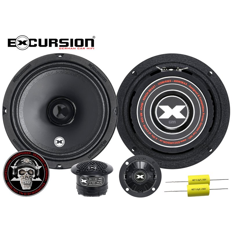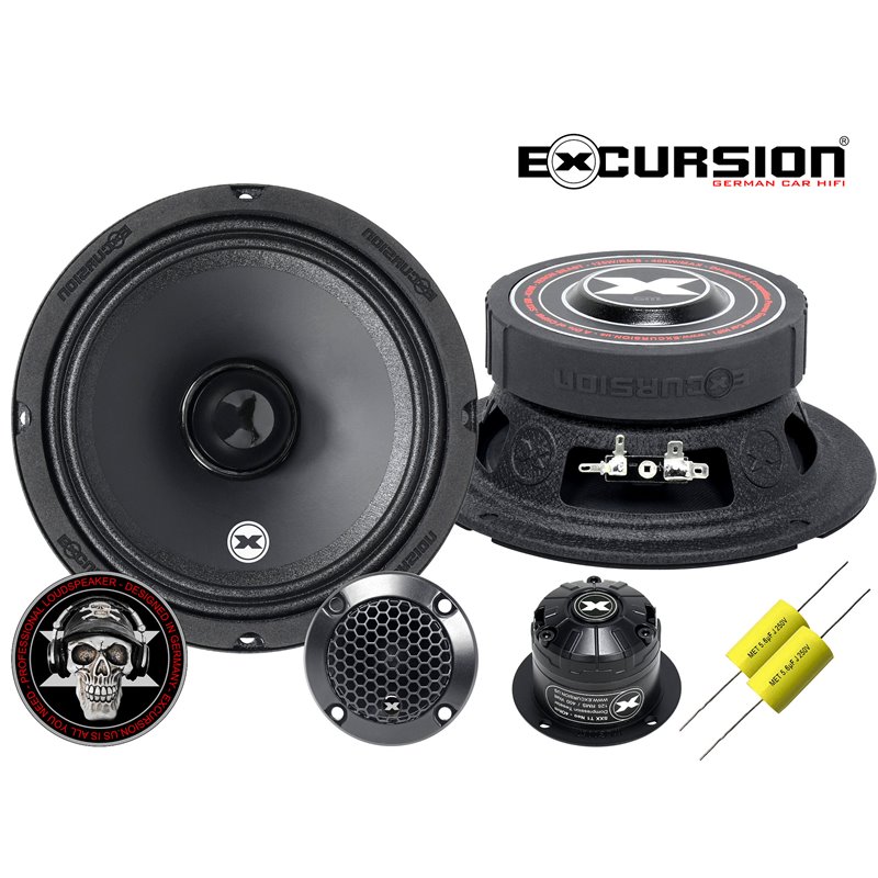 Samochodowy 2-drożny zestaw głośników odseparowanych SQ-SPL o wysokiej efektywności z serii SXX Street Xenon PRO AUDIO niemieckiej marki Excursion. W skład zestawu wchodzą dwa głośniki średnio-niskotonowe (mid-woofery) Excursion SXX-M6 o średnicy 165 mm, dwa głośniki wysokotonowe (tweetery) Excursion SXX-T1 o średnicy 60 mm oraz dwa kondensatory audio MET do szeregowego podłączenia w torze tweeterów, jako filtry HP 6 dB/oct. Zestaw jest przeznaczony przede wszystkim dla wymagających fanatyków głośnego brzmienia (SPL), przy jednoczesnym zachowaniu możliwie wysokiej jakości dźwięku (SQ), a także do zastosowań w samochodach uczestników zawodów i turniejów car audio SPL, jako doskonałe uzupełnienie systemów audio wykorzystujących wiele potężnych subwooferów. Znakomicie sprawdzą się również w samochodach demonstracyjnych (democarach) prezentowanych publicznie podczas targów, zlotów lub innych imprez. Każdy komponent wchodzący w skład zestawu Excursion SXX-6C można także kupić oddzielnie.