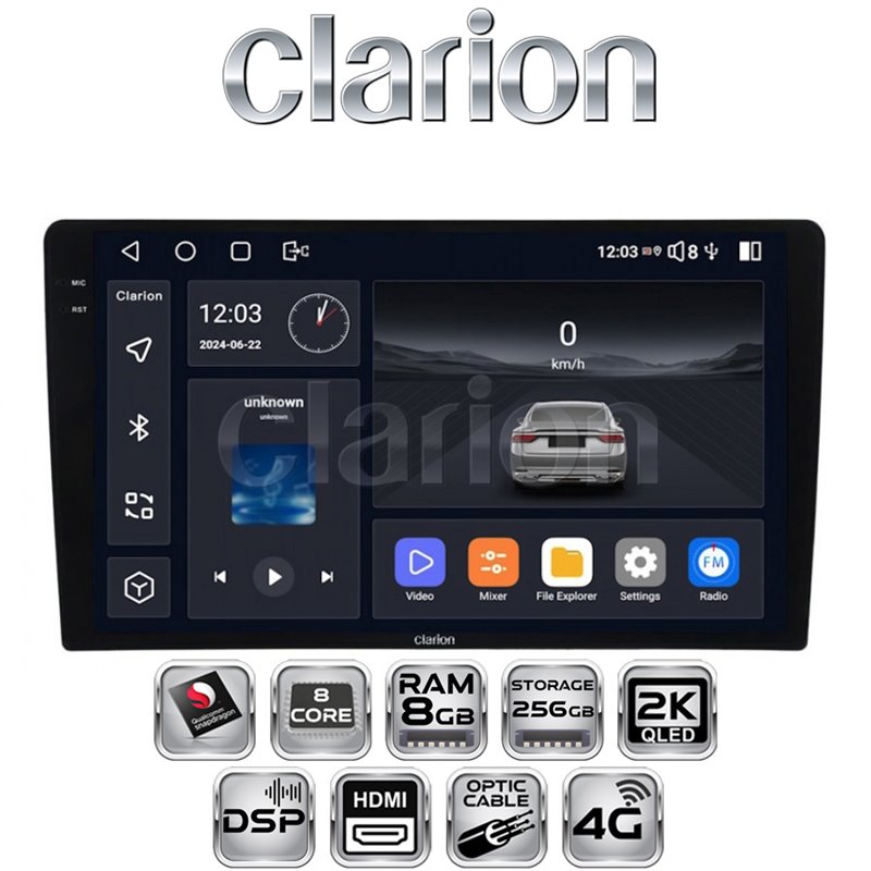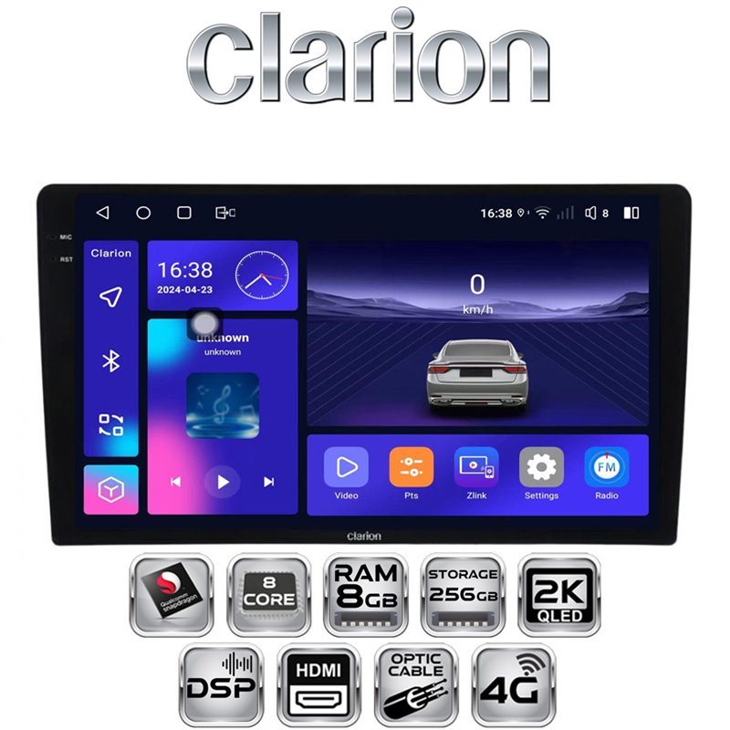 Stacja multimedialna Clarion GL-700 9" Android z procesorem Snapdragon 665, 8 GB RAM i 256 GB pamięci. Wyświetlacz IPS 2000×1200, DSP, Bluetooth 5.0, Wi-Fi, obsługa kamer AHD i systemu 360°. Idealna do systemów audio w samochodach, oferująca wyjątkową jakość dźwięku i obrazu.