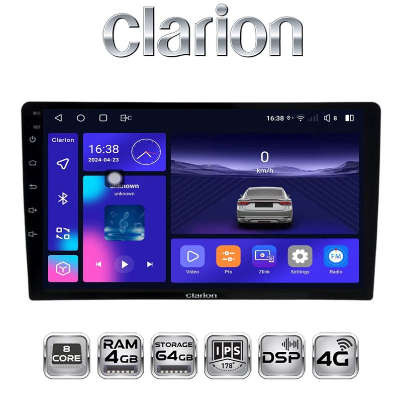 Clarion GL700 to stacja multimedialna z 9-calowym wyświetlaczem IPS, procesorem 8-rdzeniowym, 4GB RAM i 64GB pamięci, wyposażona w cyfrowy procesor dźwięku DSP oraz funkcje Bluetooth i Wi-Fi. Doskonała do rozbudowy systemu audio w samochodzie.