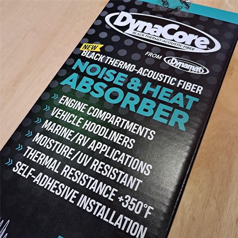 DynaCore to nowy, nowoczesny pochłaniacz hałasu i ciepła z czarnym rdzeniem z włókien. Oferuje unikalną strukturę niezbędną do rozpraszania fal dźwiękowych i pochłaniania ciepła. Oprócz doskonałych właściwości pochłaniania dźwięku, jest lekki, elastyczny, kompresowalny i termoizolacyjny. Czarny rdzeń z włókien zapewnia doskonałe właściwości pochłaniania niskich częstotliwości, odporność termiczną do 175°C (350°F) oraz zgodność z normami UL94, MVSS 302, UL HF1, UL HBF. Dostępny w grubościach 1/2" i 1" oraz wymiarach 32" x 54", co daje całkowitą powierzchnię pokrycia 12 stóp kwadratowych (1,1 m²).