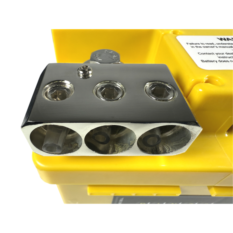 terminal (rozdzielacz) kabli zasilających car audio - wejście: 1 śruba M8 / wyjście: 3 otwory 53 mm2 + 16GA IN/OUT, platynowane wykończenie HPM, 1 szt.