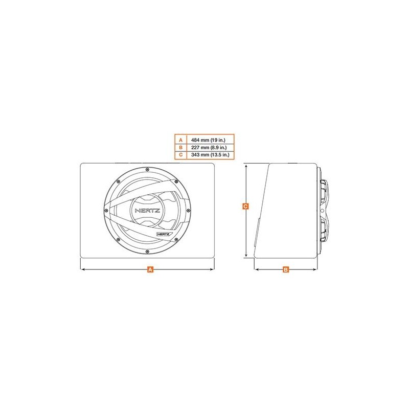 Jednostka skrzyni Hertz DBX 30.3, którą jest sub DS, zapewnia uderzający, dynamiczny otaczający zawsząd bas. Bardzo gruba obudowa MDF dzięki swojej sztywnej i stabilnej konstrukcji nie wpływa na akustykę. Tylny panel nachylony pod kątem spełnia dwie ważne funkcje: zmniejsza refleksy back-wave i ułatwia instalację.