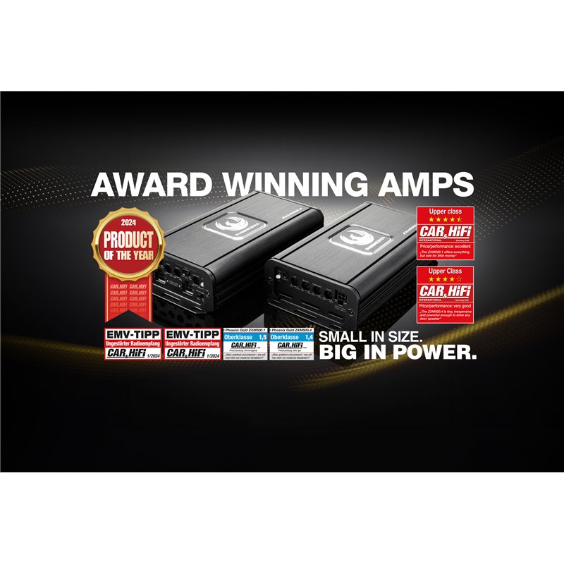 Phoenix Gold ZXM500.4i - wzmacniacz 4-kanałowy 1000 W. Jeden z najmniejszych i najmocniejszych wzmacniaczy czterokanałowych na rynku. Produkt roku 2024!